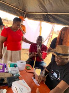 Beneficiaries received a wide range of free medical services, including the distribution of over 800 malaria medications, blood pressure drugs, acetaminophen and vitamins, HIV testing, blood sugar and blood pressure checks, general medical consultations, medicated reading glasses, and mosquito nets. All services were provided at no cost to the participants.