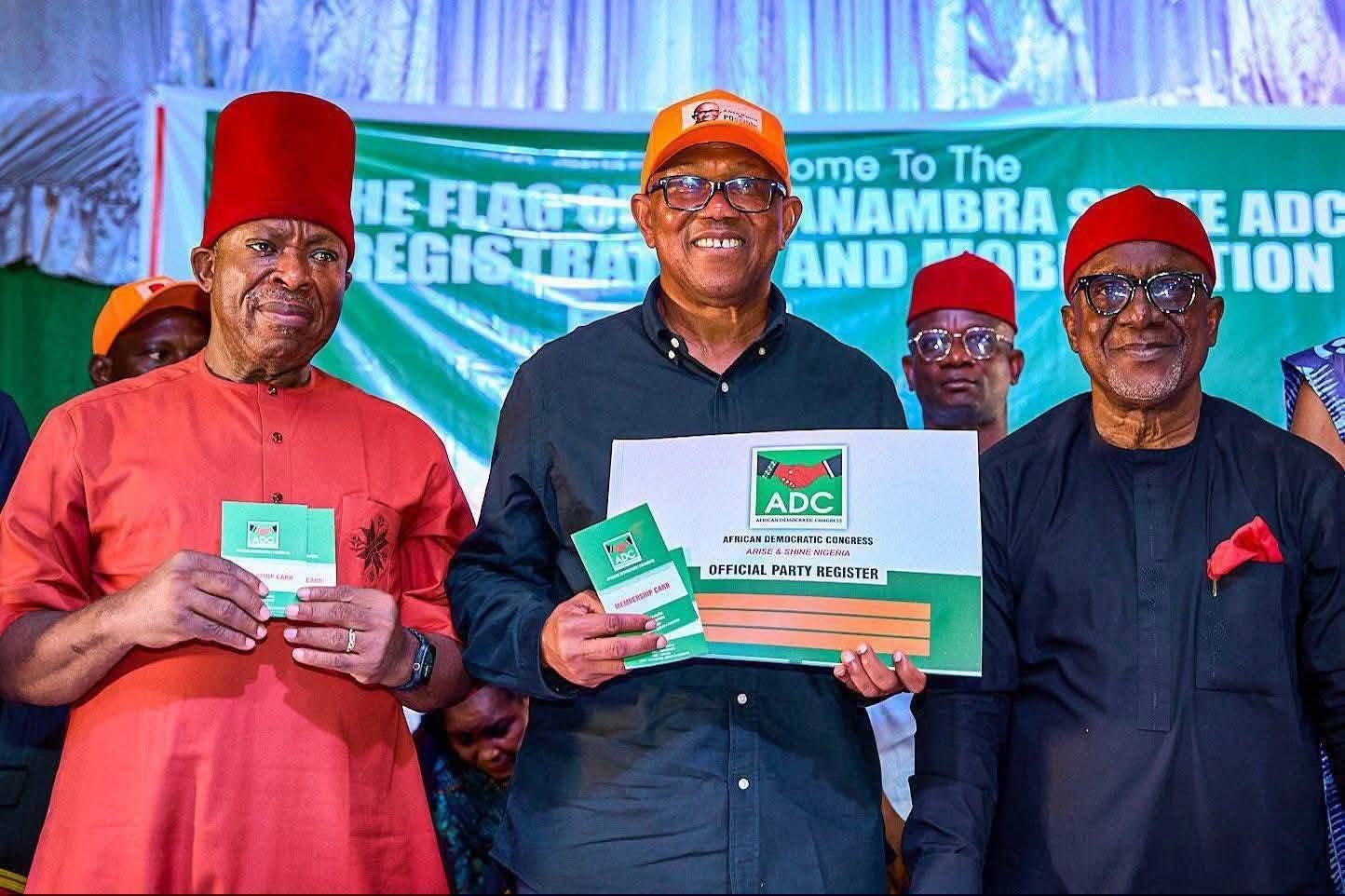 The presidential candidate of the Labour Party in the 2023 general election, Mr. Peter Obi, has formally registered as a member of the African Democratic Congress, ADC, in Anambra State.