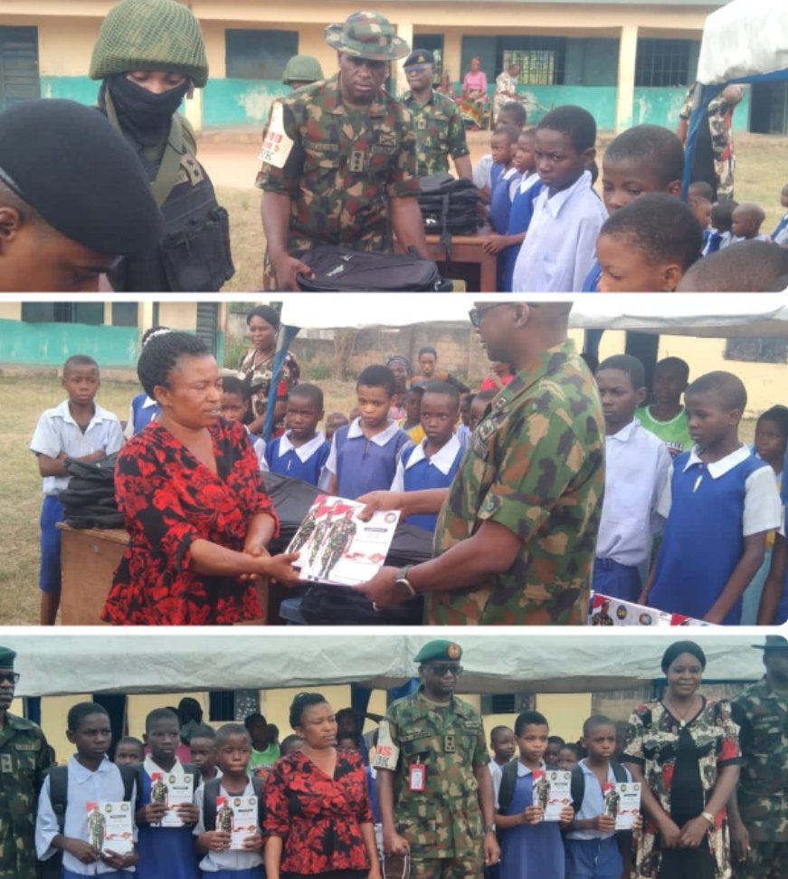 The Nigerian Army has distributed school bags and exercise books to pupils of Ogwumabiri Primary School, Lilu, in Ihiala Local Government Area of Anambra State.