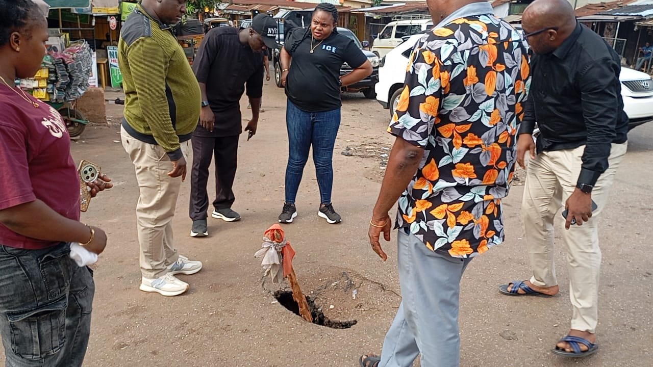 Speaking to newsmen about the failed portion of the road, the Mayor who was on transit with his entourage going for Monday market inspection said that he told his driver to pull over the moment he spotted the unusual pothole at the middle of road.
